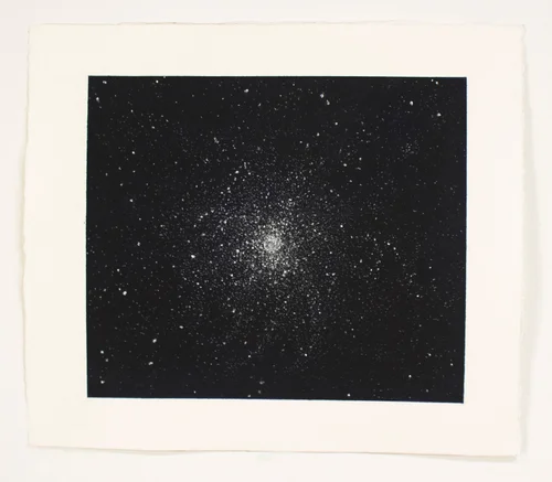 This is a drawing of the globular star cluster M13. There are approximately 300,000 stars in the cluster, some of them 11.7 billion years old. These stars are some of the oldest objects in our galaxy and easily the oldest objects most people can ever hope to see.