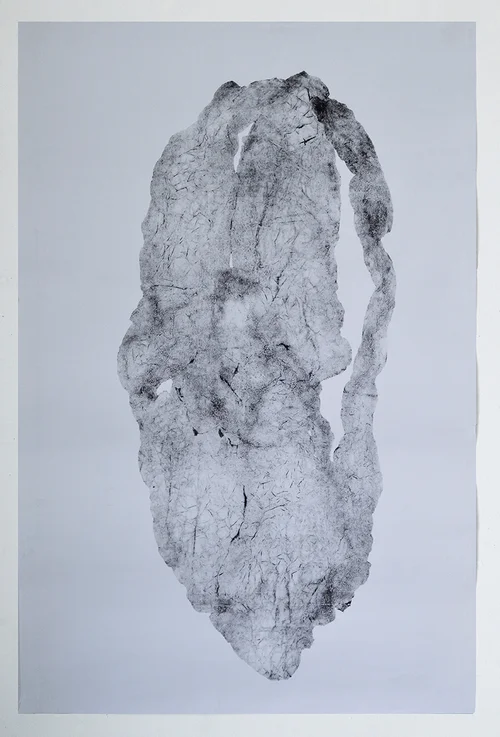 Swan Stone, detail. Mono-print, Pastels and charcoal on mulberry paper. 105" x 120". 2018