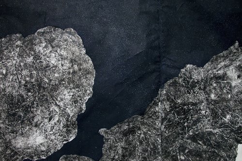 Sister Stone: Winter, detail. Monoprints on mulberry paper and acrylic paint applied directly onto the wall. 2018