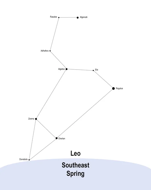 This piece represents the constellation Leo in the eastern sky of the northern hemisphere. Leo is a spring constellation.