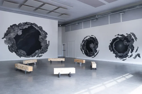 In the exhibition A Mythic Pause, Molly Kaderka presents her latest works, which explore deep time embodied in geological formations and the night sky and engaged in a delicate interplay of terrestrial and celestial realms.
